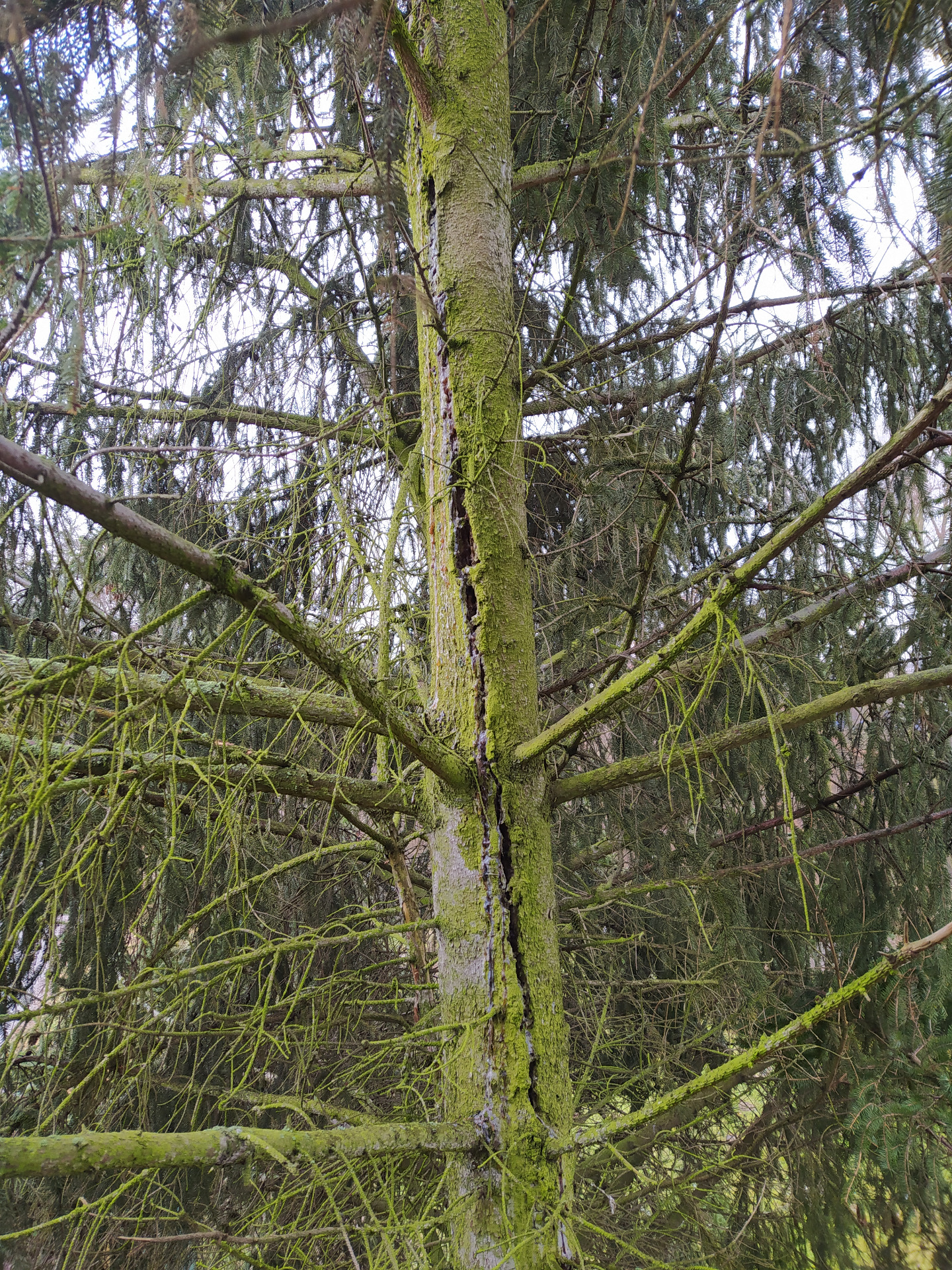 Rizikové kácení smrku v elektrických drátech.